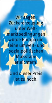 In jedem europäischen Zuckerpackerl steckt das, was wir unserer Land- und Zuckerwirtschaft aus gutem Grund - und zu einem angemessenen Entgelt - abverlangen und was in Übersee eben nicht erbracht werden muss, nämlich umwelt- und sozialverträglich erzeugte Höchstqualität. Die tatsächlichen Kosten und Kostenunterschiede des Zuckers werden nur dann wirklich greifbar, wenn wir uns klarmachen, welche Ausbeutung an Mensch und Natur anderswo betrieben wird. Dies sind Lasten, die auf den Preisschildern des Weltmarktzuckers nicht auftauchen. Sie machen deutlich, was unser Gemeinschaftszucker wert ist: seinen Preis.